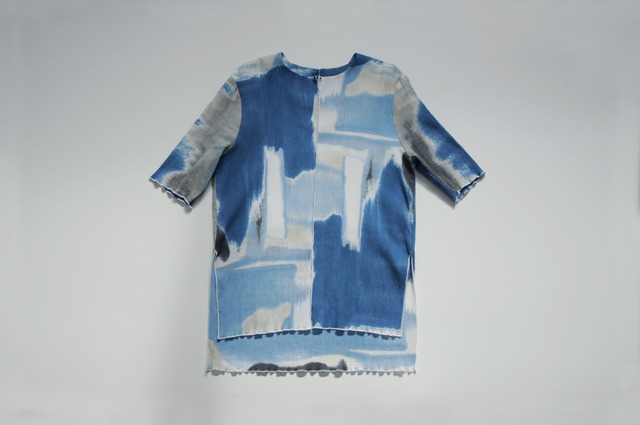 引き染めの原画をプリントしたトップス。 綿100%の楊柳生地にシルクスクリーンプリントしています。 裏地がついているので透けにくく快適に過ごせます。 シボが寄っているので洗いっぱなしで着られてケアが楽です。 後ろのボタンはアンティークのものを使用。 もちろんご自宅でお洗濯していただけます。 【受注制作】 ※柄行が大きいため、一着ずつ柄の配置が異なります。 ※制作スケジュール上、ご注文後のご変更はいたしかねますのでご注意ください。 color|Blue Material|綿100%(cotton100%) Technique|シルクスクリーンプリント(Silk Screen Printing) Made in JAPAN Size|Free 後着丈 Back length|69.5cm 身幅 Chest|54cm 肩幅 Shoulder width|41cm 袖丈Sleeve Length|56.5cm 袖口 Cuff|27cm モデル身長 Model height|165cm ※一度洗っていただくと生地が縮みますが、縮むことを想定したサイズになっております。 ※こちらに載せている写真は閲覧環境によって実物の色と異なって見える場合があります。 《受注商品(予約販売)につき4月発送》 こちらは受注商品となりますので、2026年4月中の発送となります。 31200yen (34320 taxin)