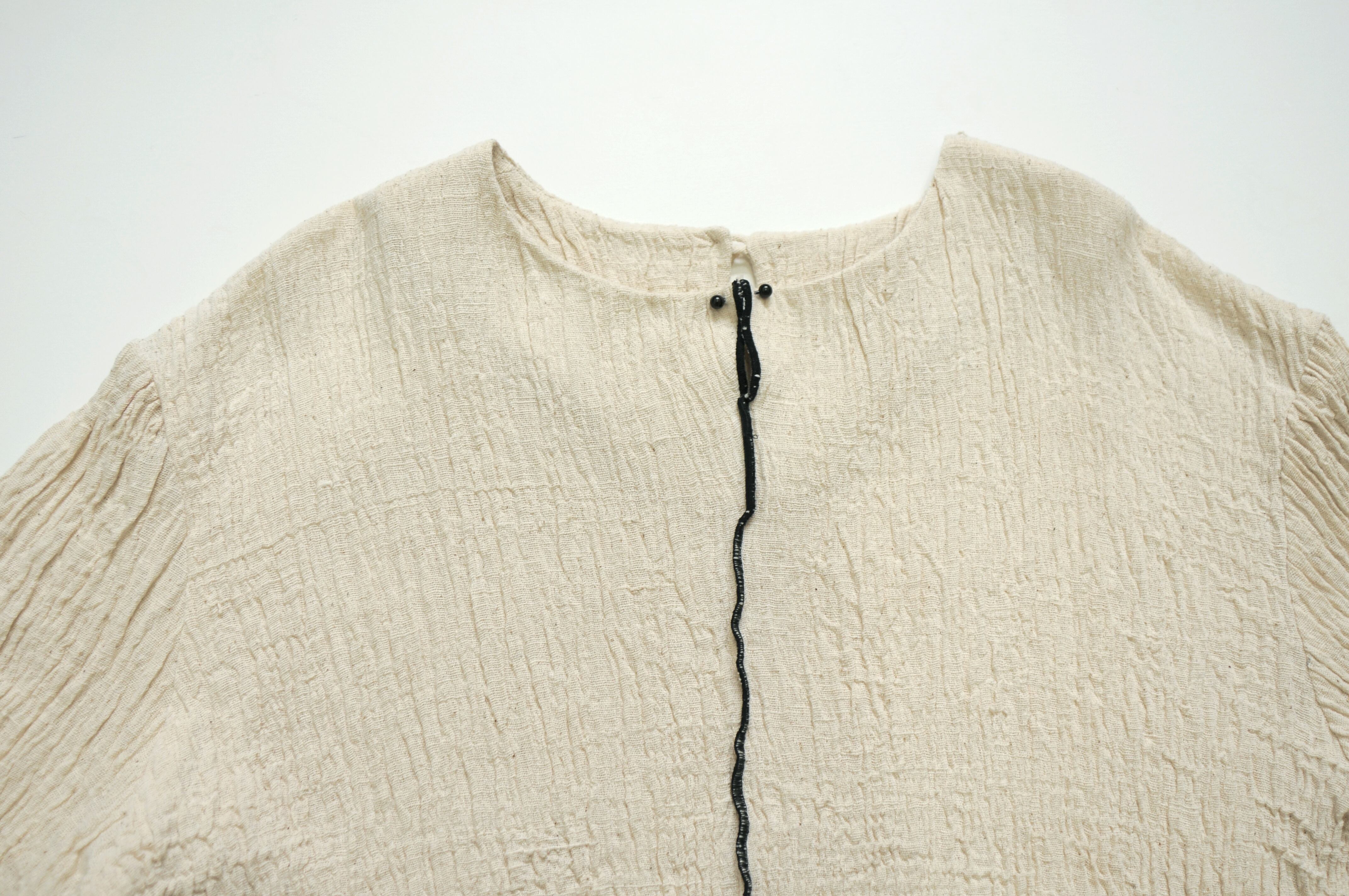 最初からシワシワの質感なので洗いっぱなしで着られてケアが楽です。