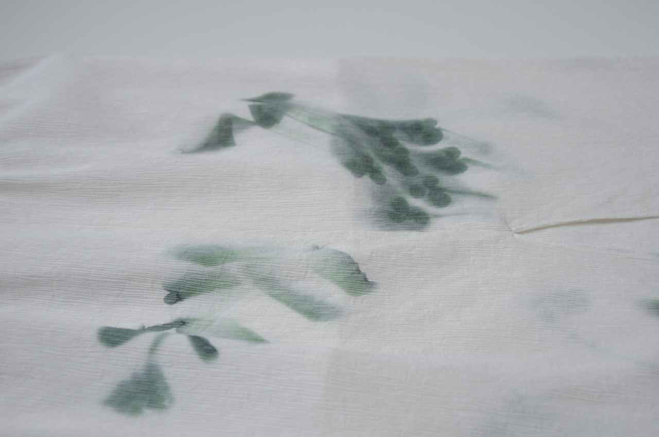 引き染めで描いた原画を元に綿100%の楊柳生地にインクジェットプリントしました。