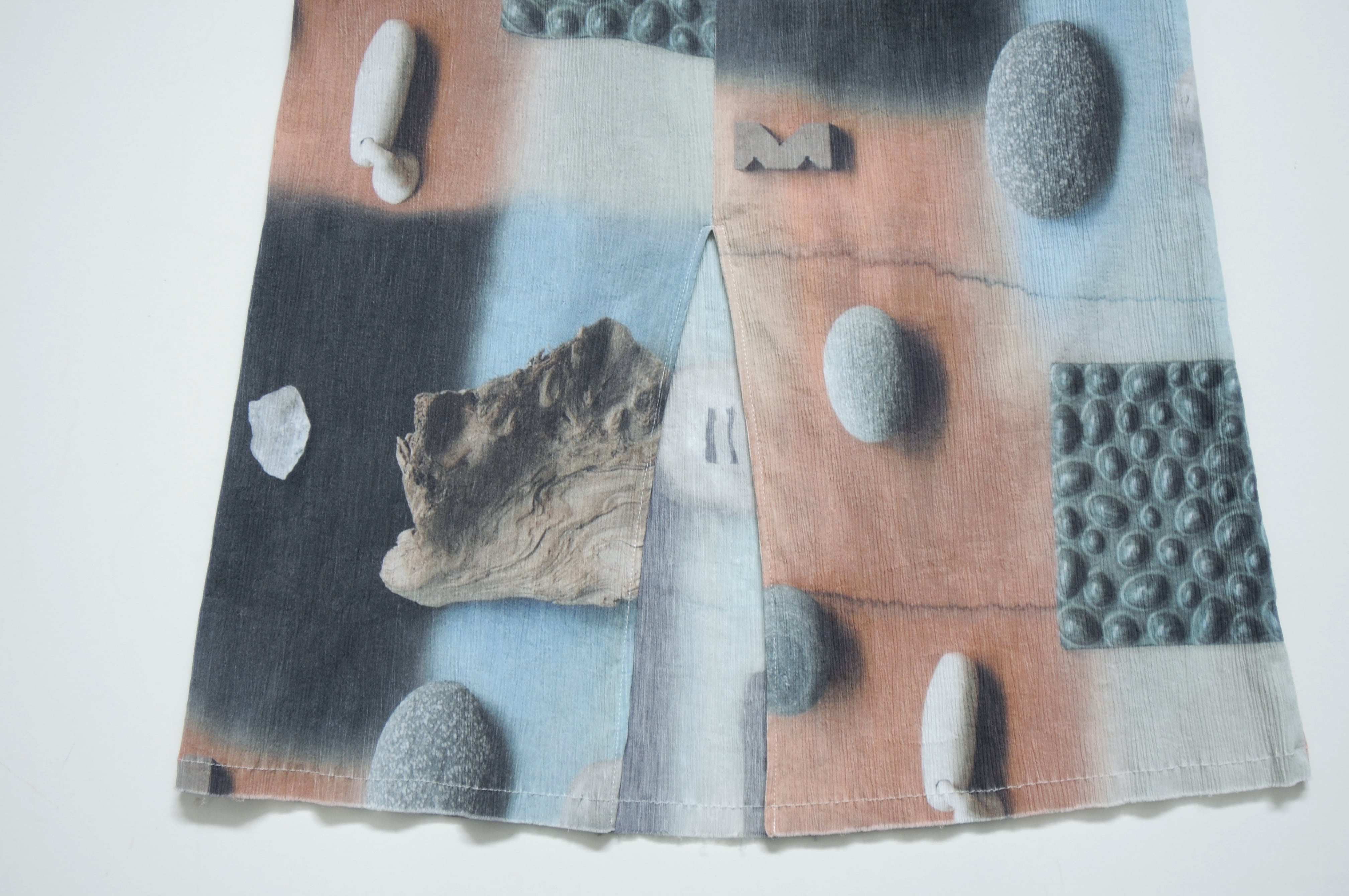 家にある役に立たないけど捨てられない物を撮影してプリントしたスカート。