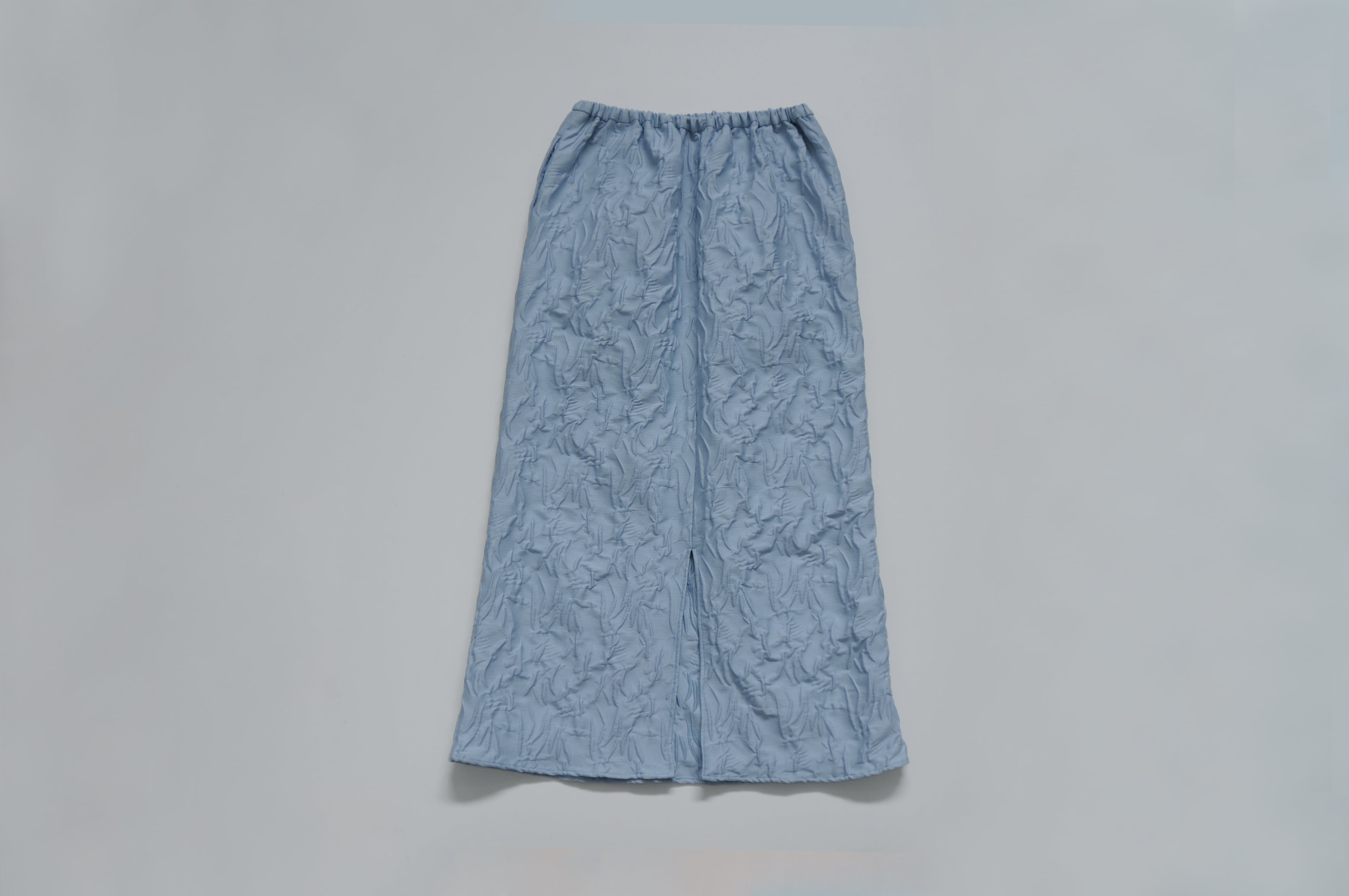 庭の植物柄をフクレ織にしてスカートを作りました。
