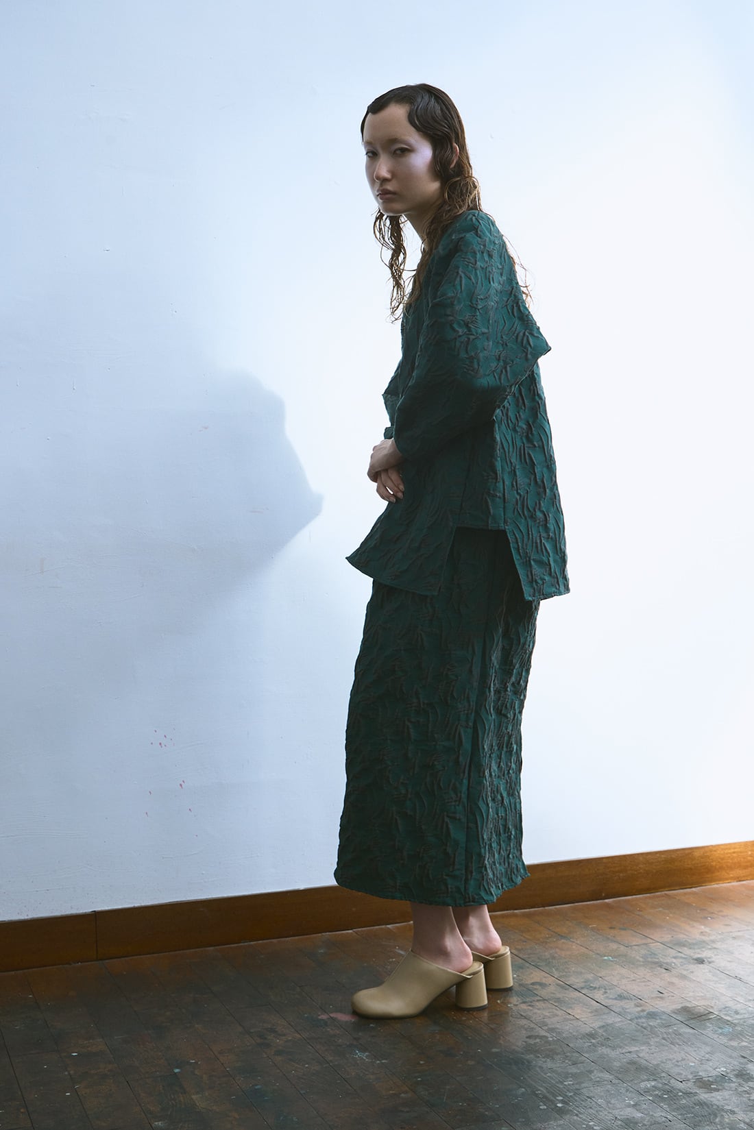 庭の植物柄をフクレ織にしてスカートを作りました。