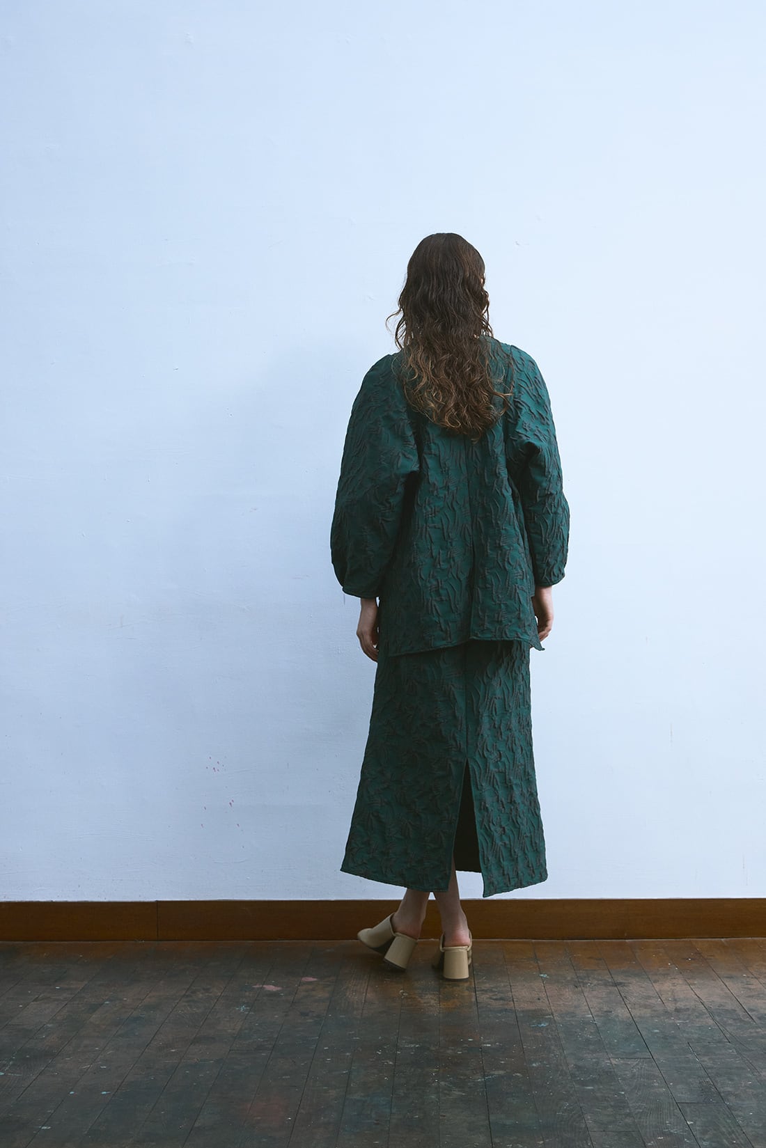 庭の植物柄をフクレ織にしてスカートを作りました。
