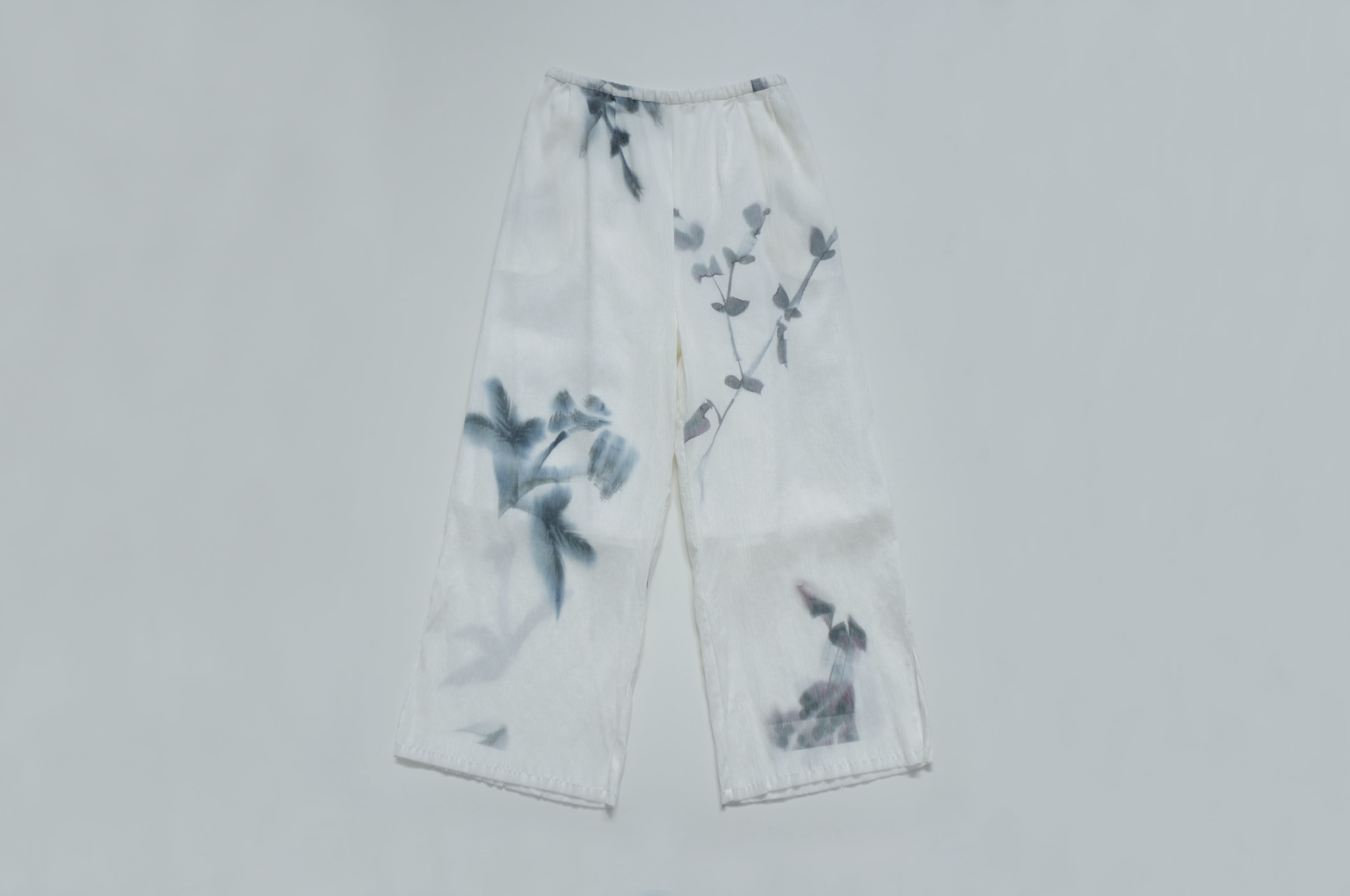 引き染めで描いた原画を元に綿100%の楊柳生地にインクジェットプリントしました。