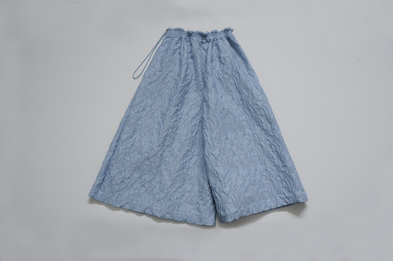 庭の植物柄をフクレ織にしてギャザーパンツを作りました。