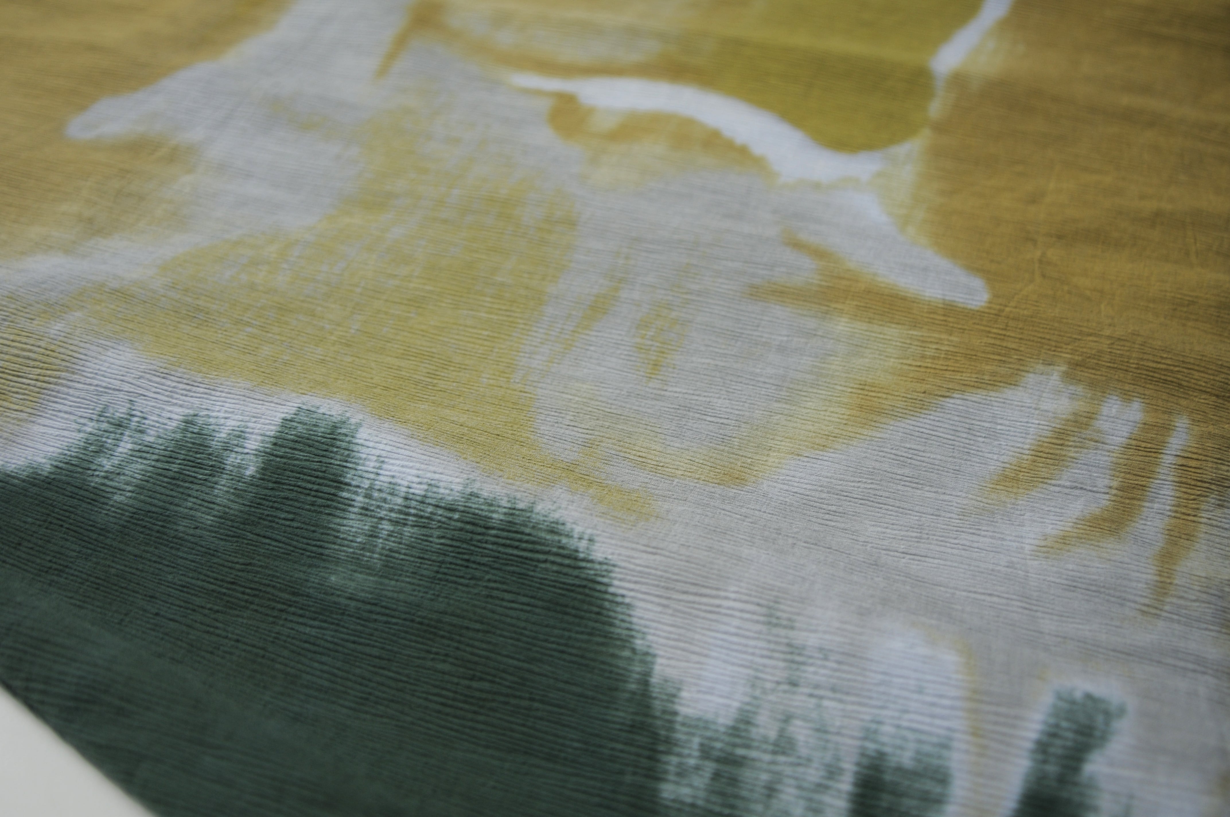綿100%の楊柳生地にシルクスクリーンプリントしています。
